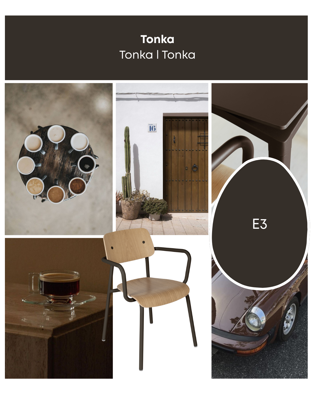 Насыщенный коричневый оттенок Tonka напоминает о дремучих лесах Амазонки, вобрав в себя теплые ноты ванили, миндаля и карамели. Этот цвет привносит в палитру Fermob утонченность и загадочность. Идеально сочетаясь с натуральными материалами и теплыми тонами, он создает атмосферу уюта и природной гармонии.